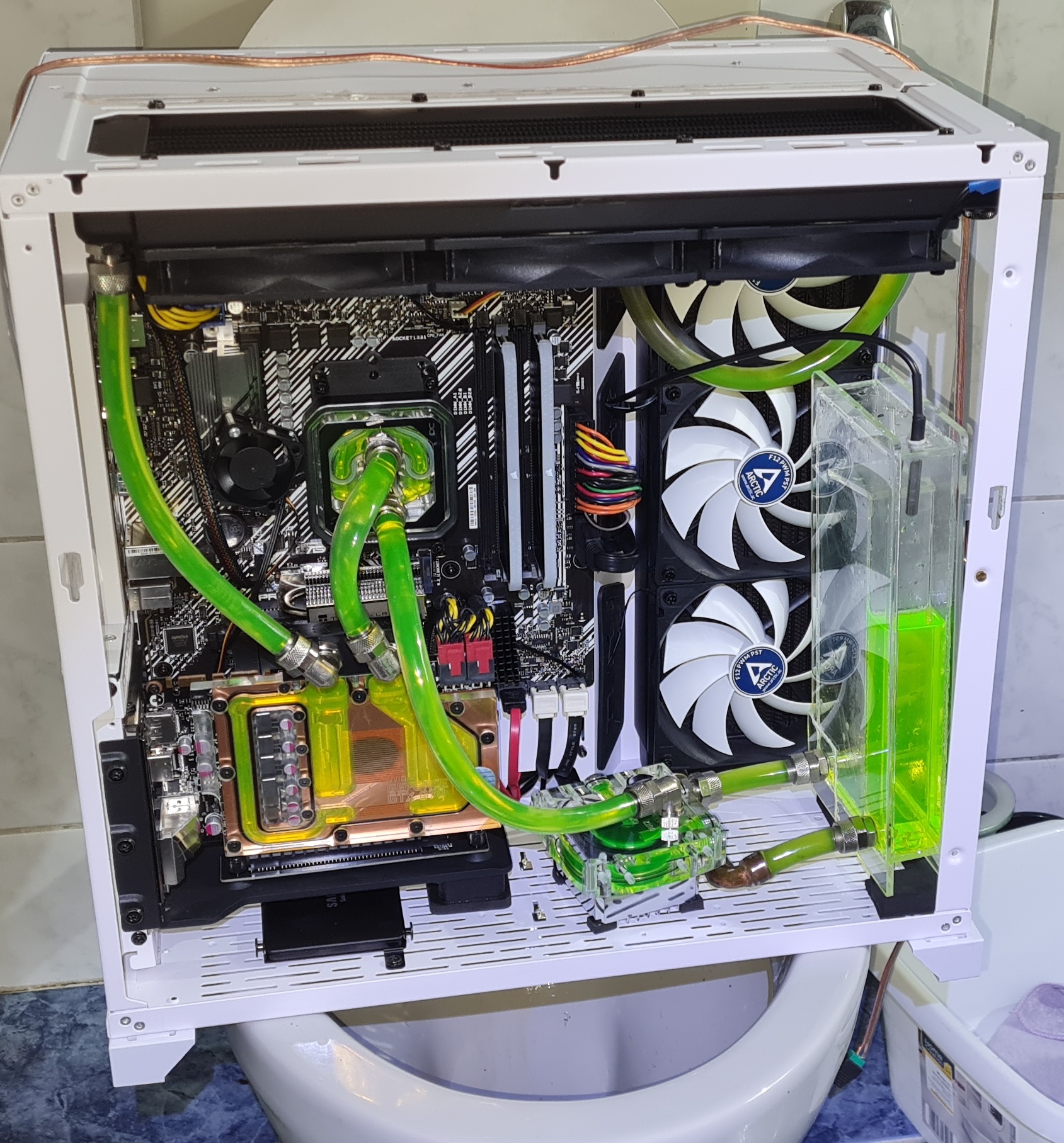 Wasserkühlung auf dem Klo durchspühlen